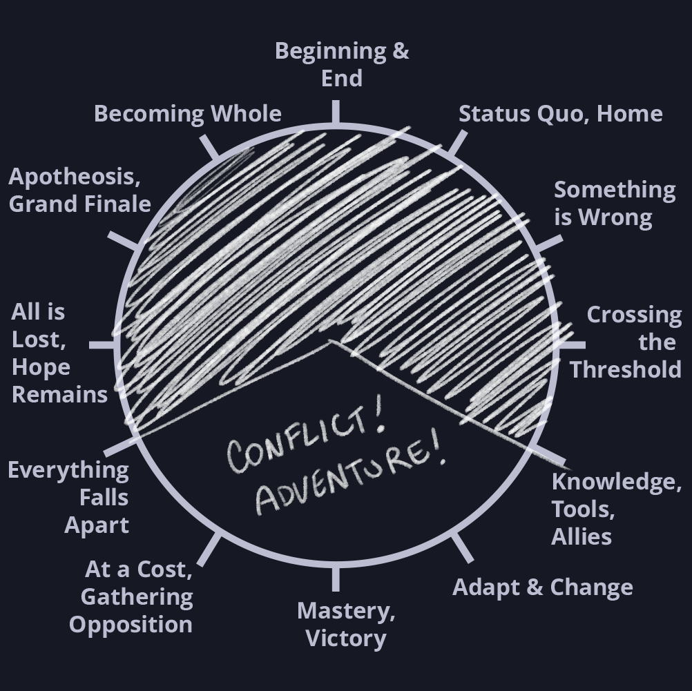 In fact, that warning goes for the story cycle at large. It's also intended to be loose and evocative rather than formulaic and prescriptive. If you find yourself trying to hit a checklist of beats required by a formula, your writing is going to come out mechanical and soulless.2
